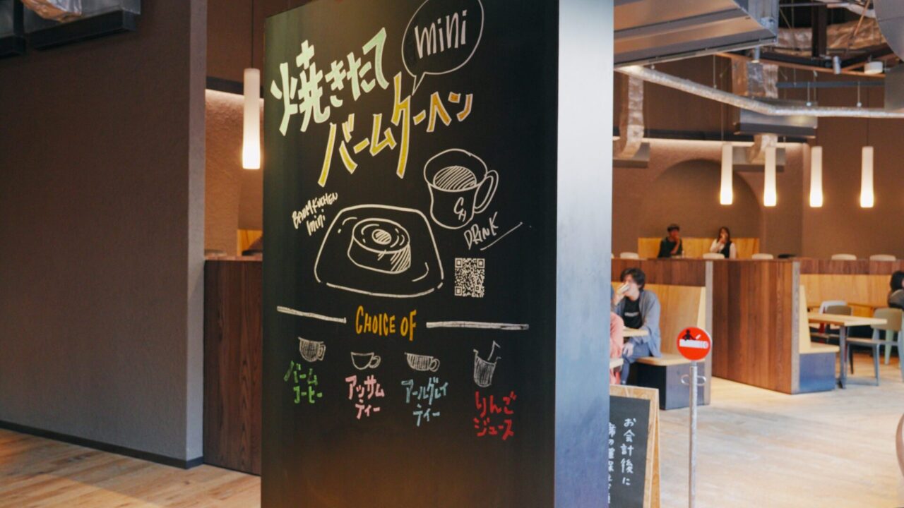 ここでは、焼きたてのバームクーヘンminiを味わうことができます。