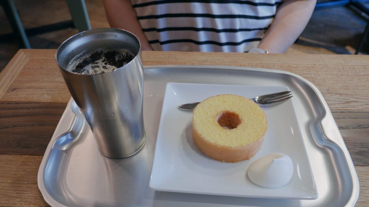 セットで提供される焼きたてのバームクーヘンは、温かく、しっとりとした食感が際立っていました。