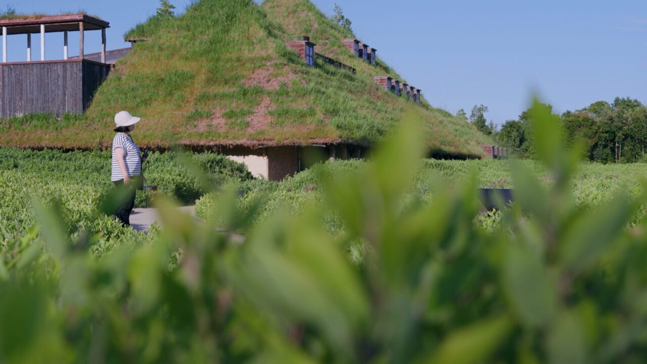 - メインショップ(草屋根): 一階は和・洋菓子の販売、二階はカフェスペースになっています。この建物全体が、自然素材を活かした一つのアート作品です。