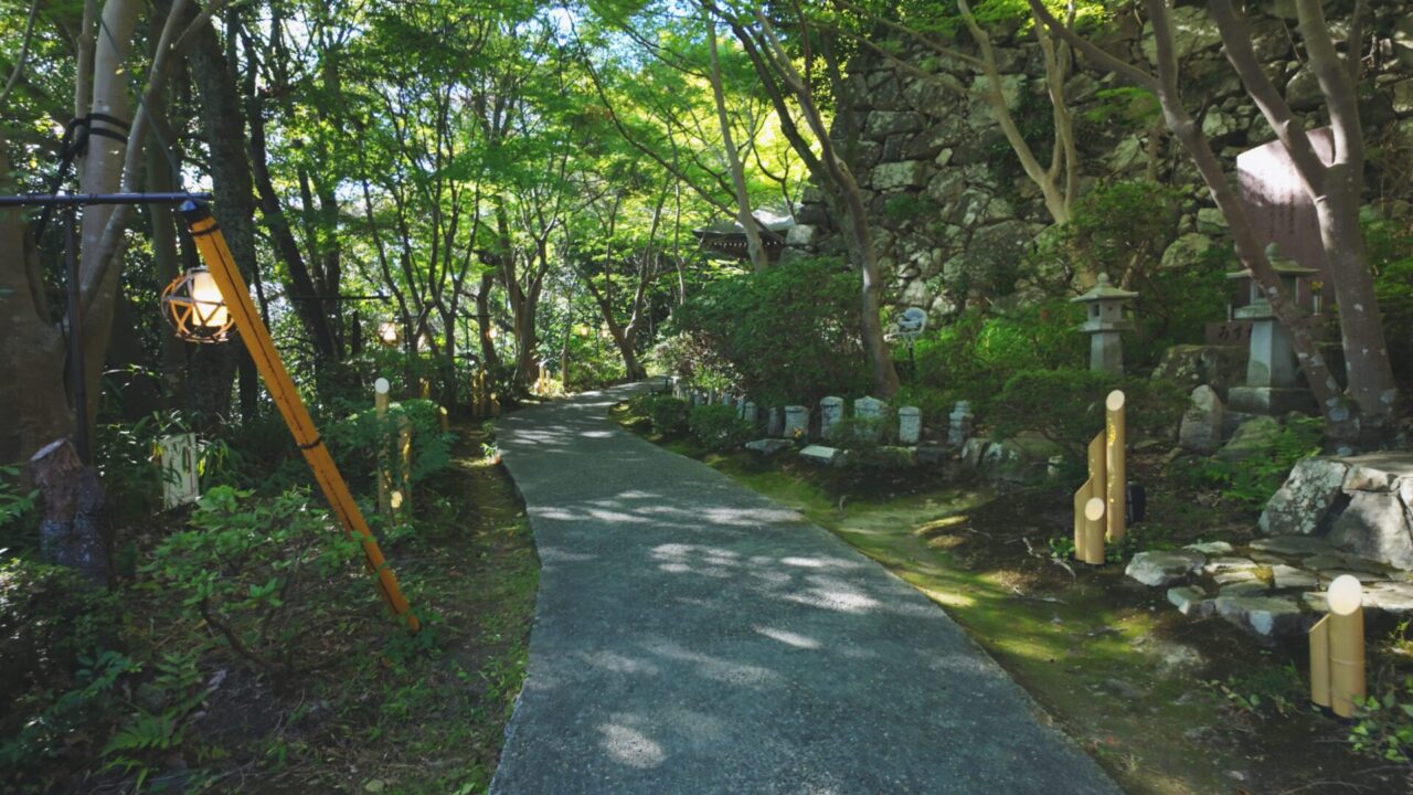 ロープウェー乗り場から、ゆるやかにのびる階段を進み、本丸跡へ向かいます。