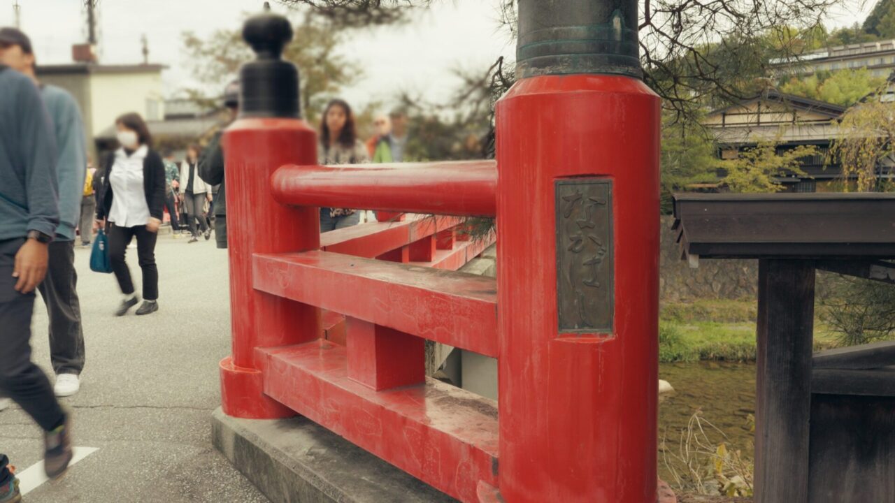 • 宮川にかかる赤い橋。高山を代表する風景です。