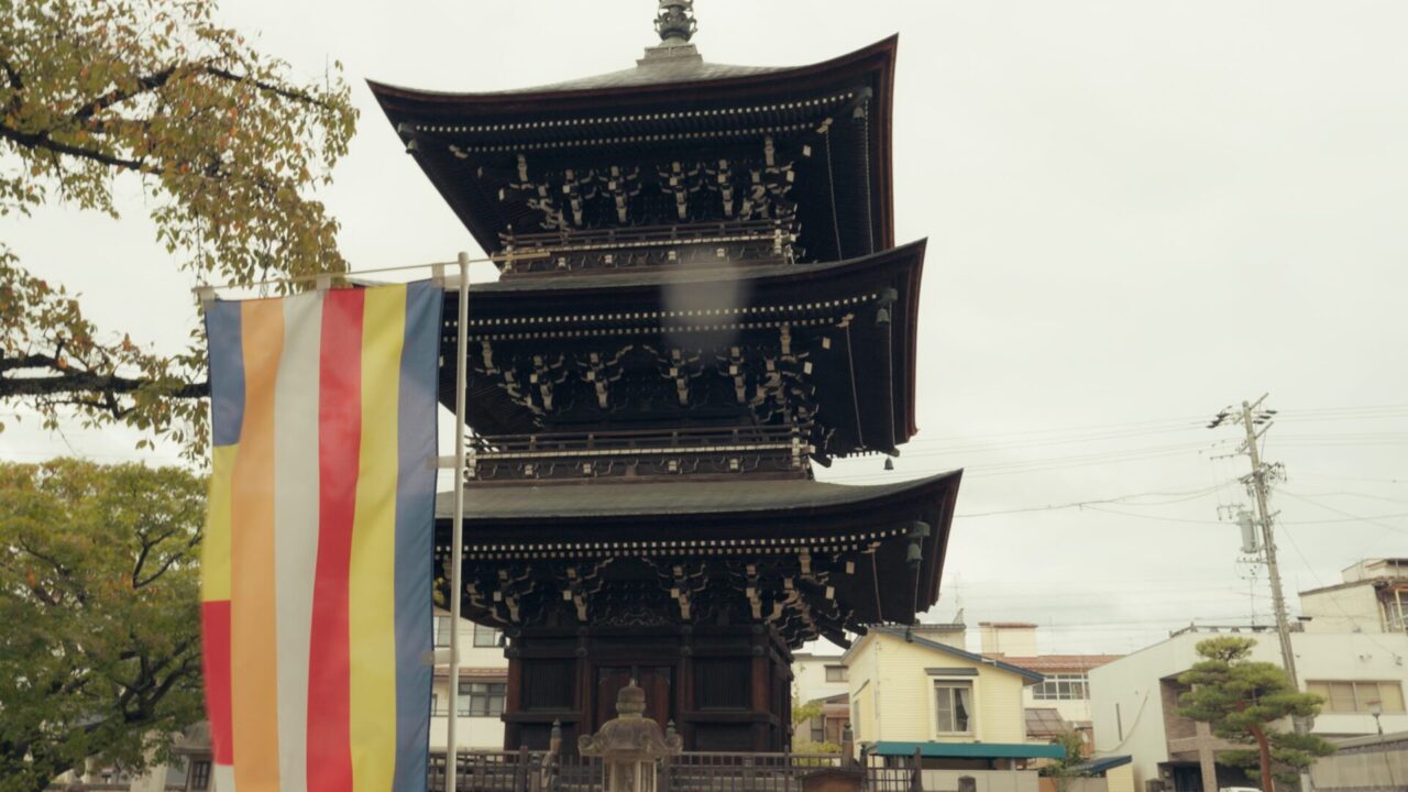 • 合掌造りの寺院。5層構造の大規模な建築です。