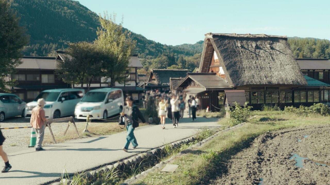 観光シーズンの白川郷は、朝早くから多くの観光客で賑わいます。