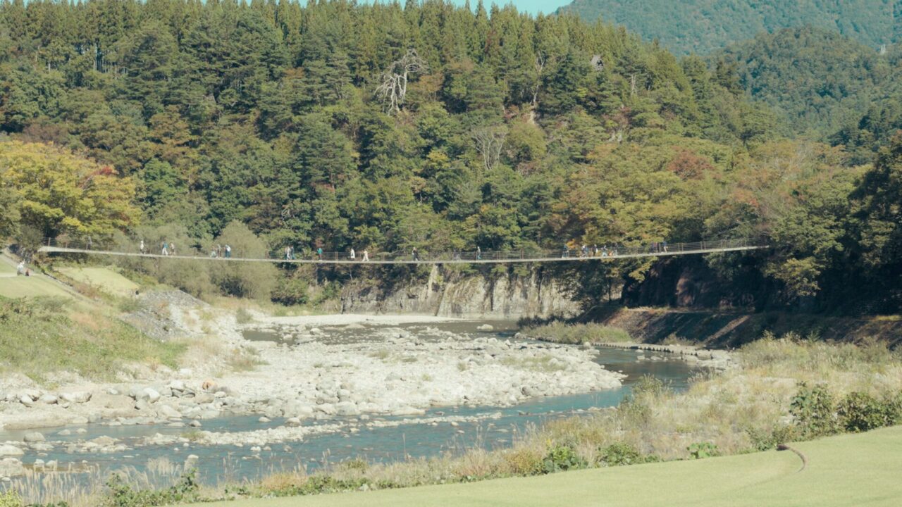• 庄川にかかる吊り橋。橋の上からの景色も美しい。
